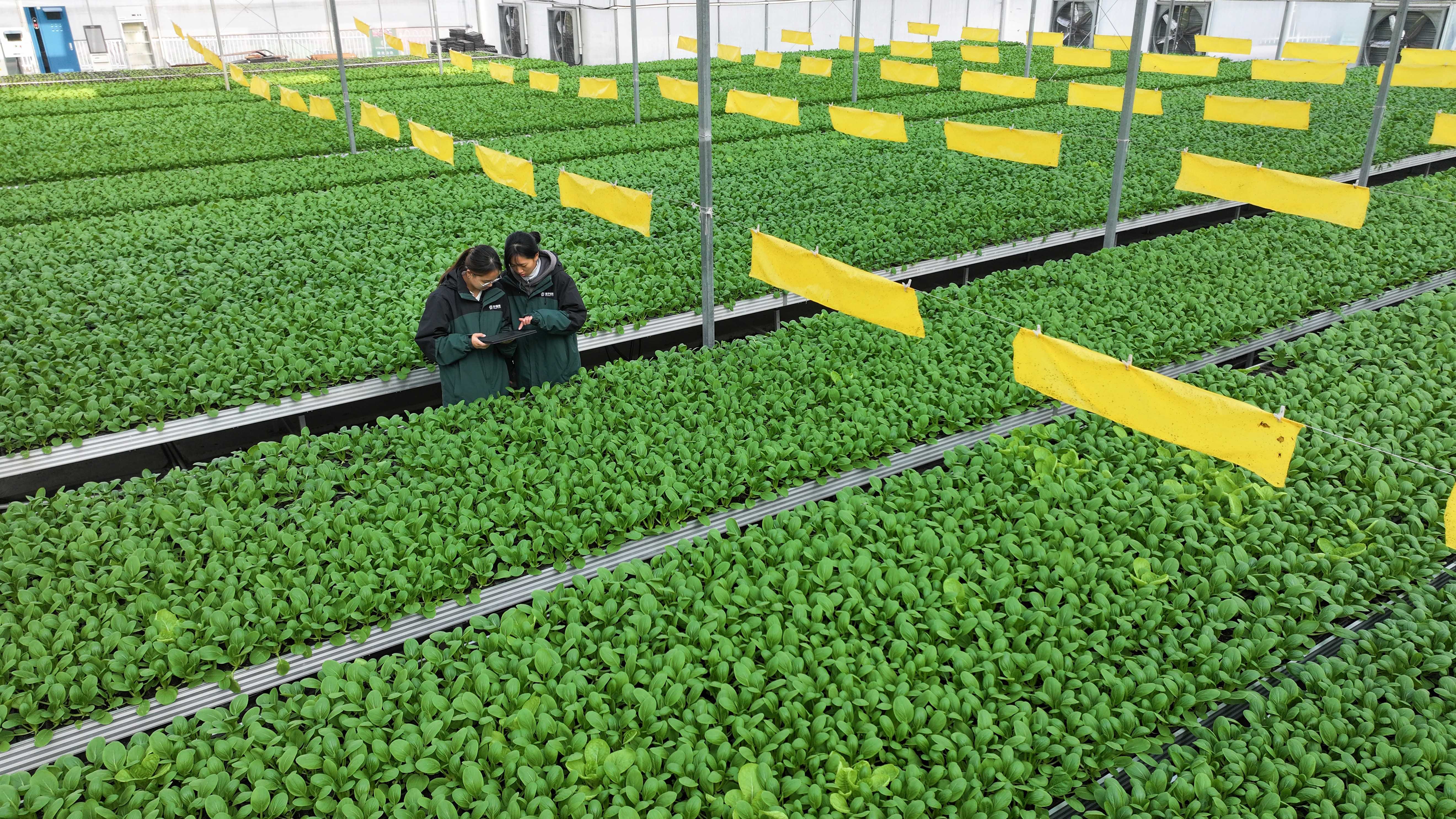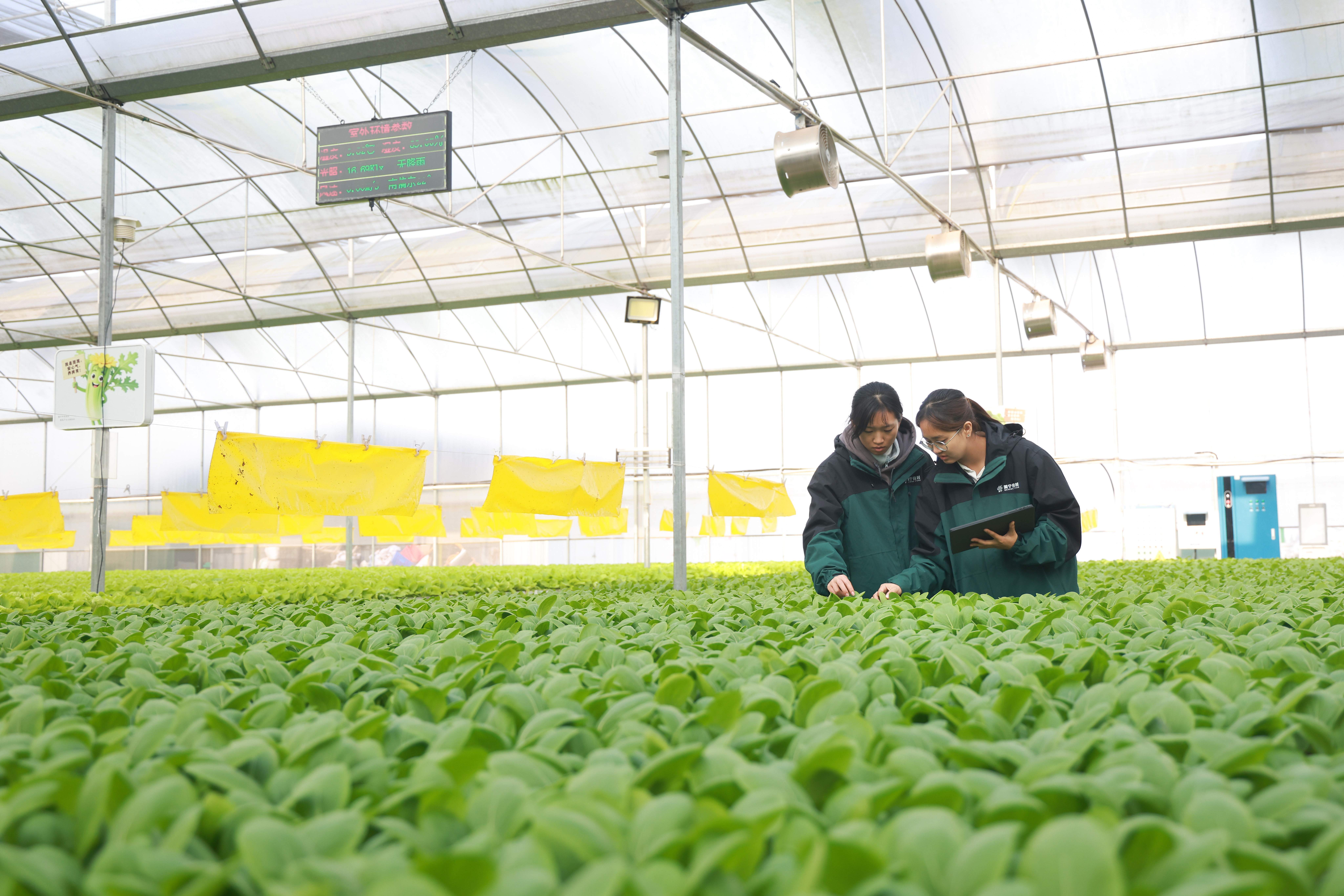 上午9点,在园区的一处大棚内,技术员鲍纹与同事手持平板电脑,轻触屏幕,灌溉、施肥、补光等指令便迅速下发。他们不再需要像以往那样逐个大棚巡查、凭经验判断——屏幕上实时更新的各项数据,已成为作物生长的“晴雨表”,清晰反映其“脉搏”与“体温”。