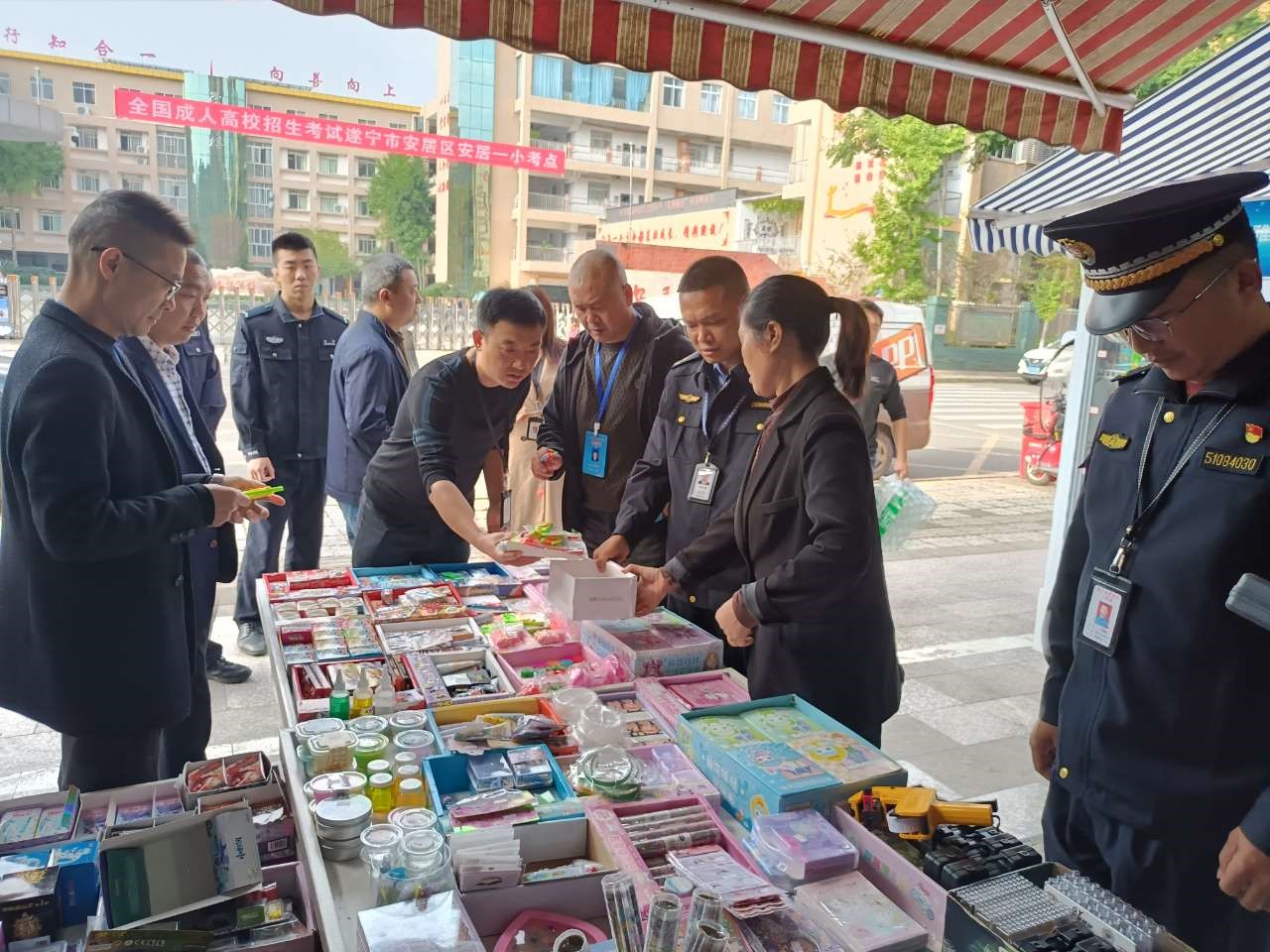 除了学校,相关部门也关注到了这一现象。为切实保护未成年人身心健康及合法权益,规范学生用品市场秩序,目前,区市场监管局每周都会组织执法人员前往学校周边的文具店进行监督检查。