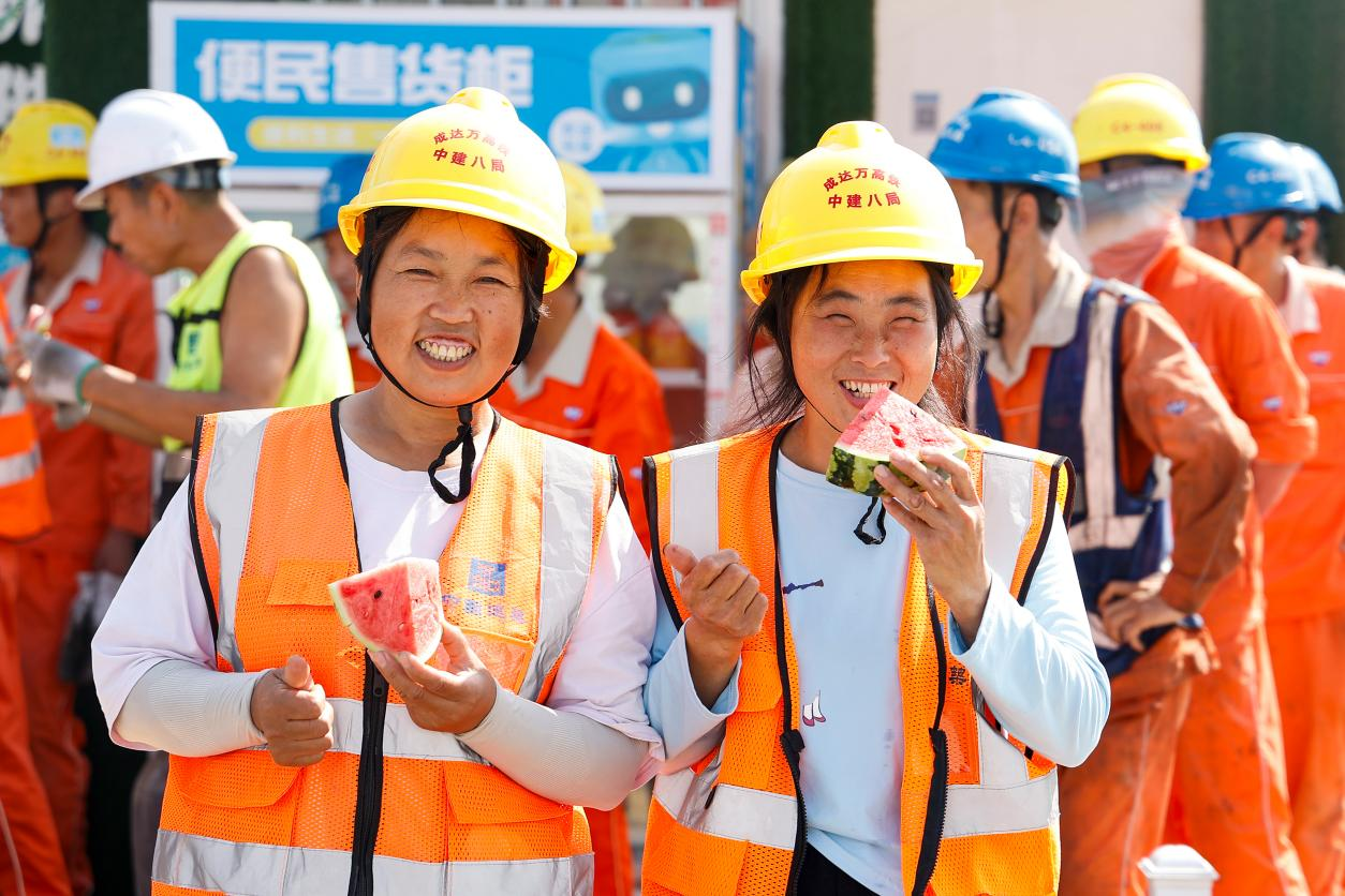 为应对高温天气,项目也采取了多项防暑措施,包括定时为现场工人供应绿豆汤、西瓜等解暑食品,并配备藿香正气水、风油精、凉茶等防暑降温物资。让工友们以更饱满的热情投入到工程建设中,以安全为底线,以效率为目标,为安居“突破300亿、争创百强区”贡献工人力量。