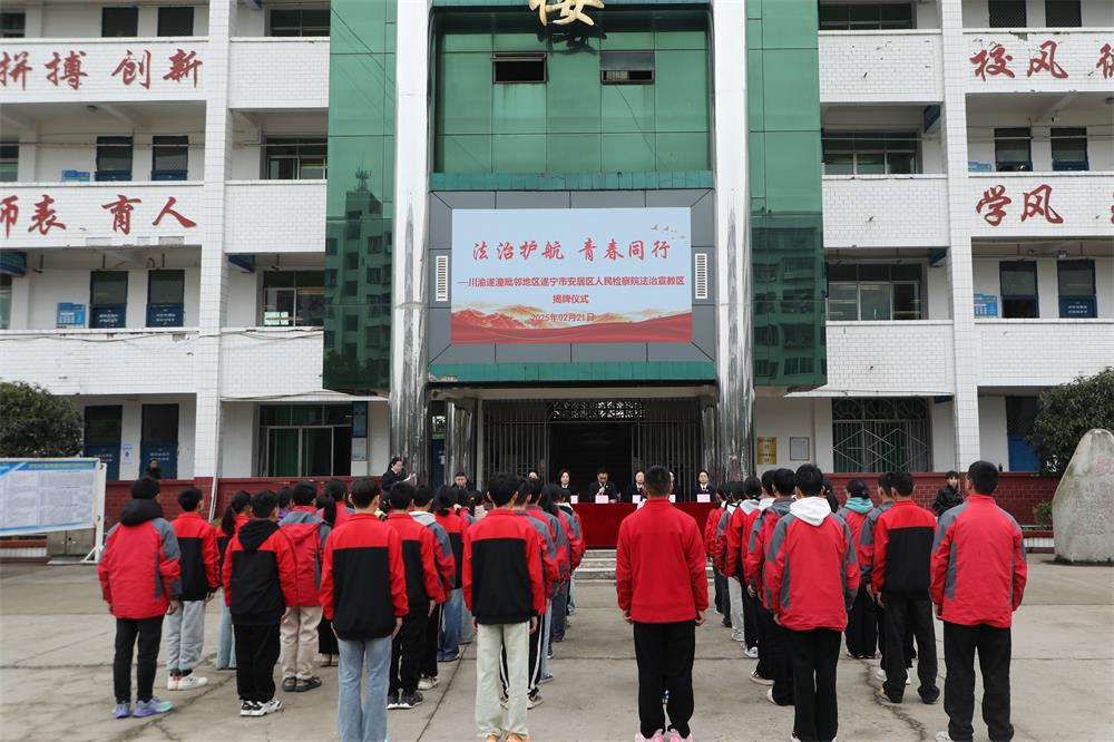 法治护航,青春同行。2月21日,川渝遂潼毗邻地区遂宁市安居区人民检察院法治宣教区在西眉镇西眉中学正式揭牌。遂宁市检察院检察委员会专职委员李琴,区人民检察院党组书记、检察长程龙出席揭牌仪式。