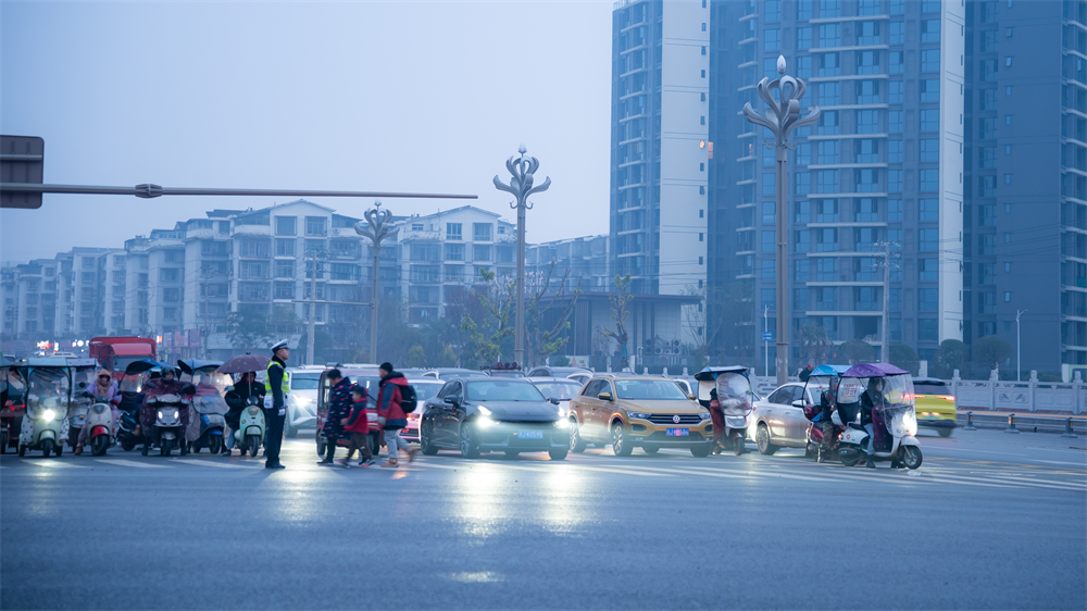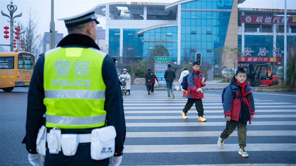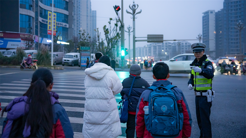 “护学岗”岗位虽小,却是一份沉甸甸的责任,无论严寒酷暑、白天黑夜,交警同志们一直坚守在校园人群和车流中,做到上下学“不缺席”,站好每一班“护学岗”。