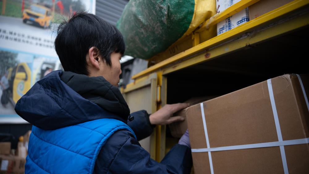 9点左右,快递员们陆续完成物件的分拣与装车,便开始了配送工作。他们每天步履匆匆,奔走在寒风之间,穿梭于城市的大街小巷。