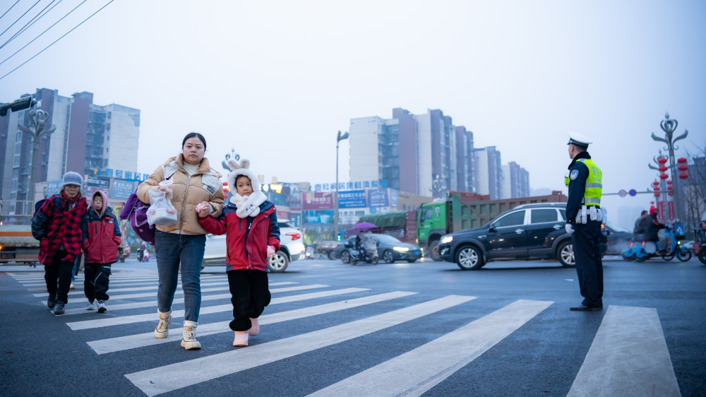 早上7点30分,当第一缕晨光试图穿透尚未完全散去的薄雾,玉丰河大桥路口已经是一片忙碌而有序的景象。寒风中,一抹“荧光绿”,成为了这个清晨最温暖的风“警”线。他们正细心地护送安居三小的学生们安全上学。