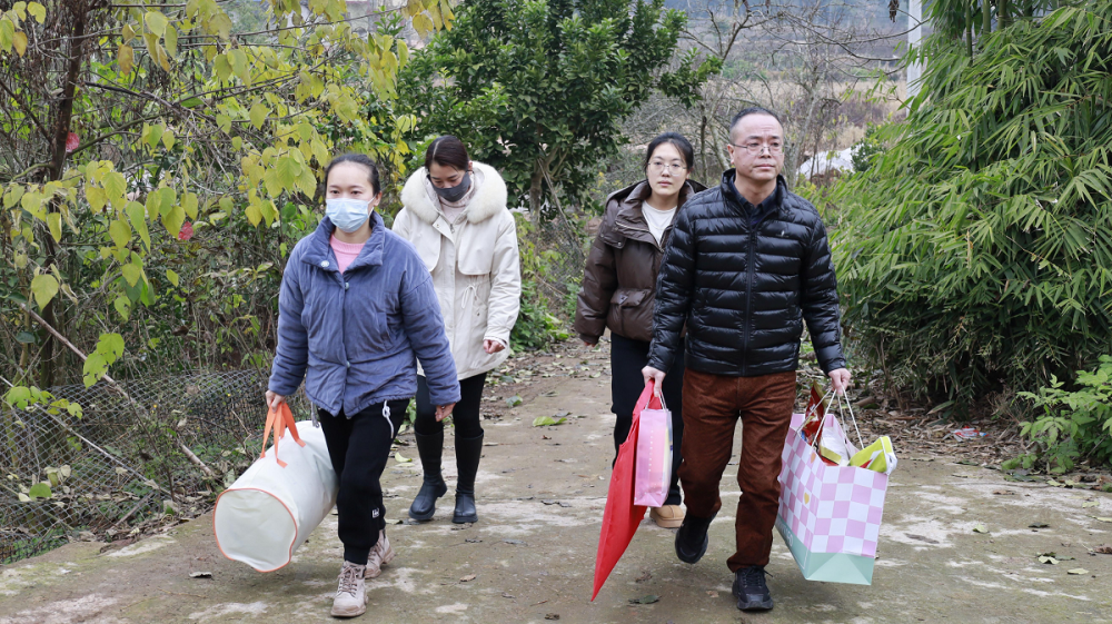 1月16日,区民政局和区慈善总会的工作人员组成慰问小组,来到三家镇龙垭村困境儿童王艺坤家中,为他送上冬被、书包、羽毛球拍、旺旺大礼包等生活用品、学习用具和节日礼物等物资,并详细询问他的学习情况和生活需求,鼓励他要勇敢面对困难,保持积极乐观的生活态度。“谢谢叔叔阿姨,新书包真好看,我很喜欢!”王艺坤收到慰问品后,喜悦之情溢于言表。