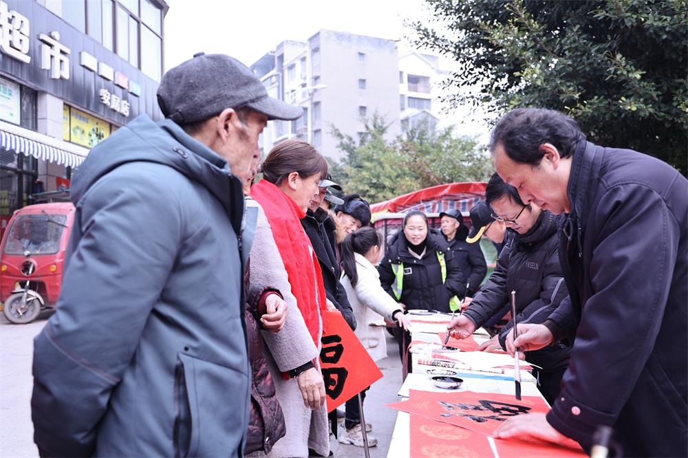 活动现场,红色宣纸慢慢铺开,来自安居区书法家协会的老师纷纷挥毫泼墨,行书、楷书、隶书等多种字体各显神韵,将浓浓的年味赋予一笔一画之间。一张张红红火火、满含祝愿的“福”字,一幅幅寓意吉祥的春联传递着浓浓祝福,现场洋溢着一片新春气氛。