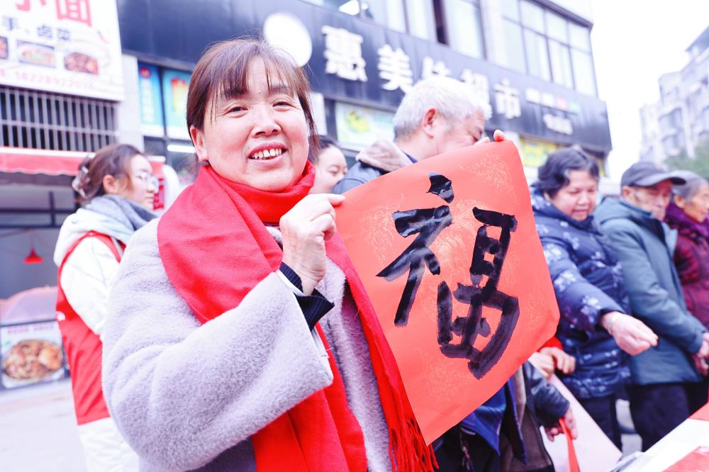 “今天我写了两副对联,一个‘福’字,我觉得非常有意义!”市民张桂蓉这样说道。