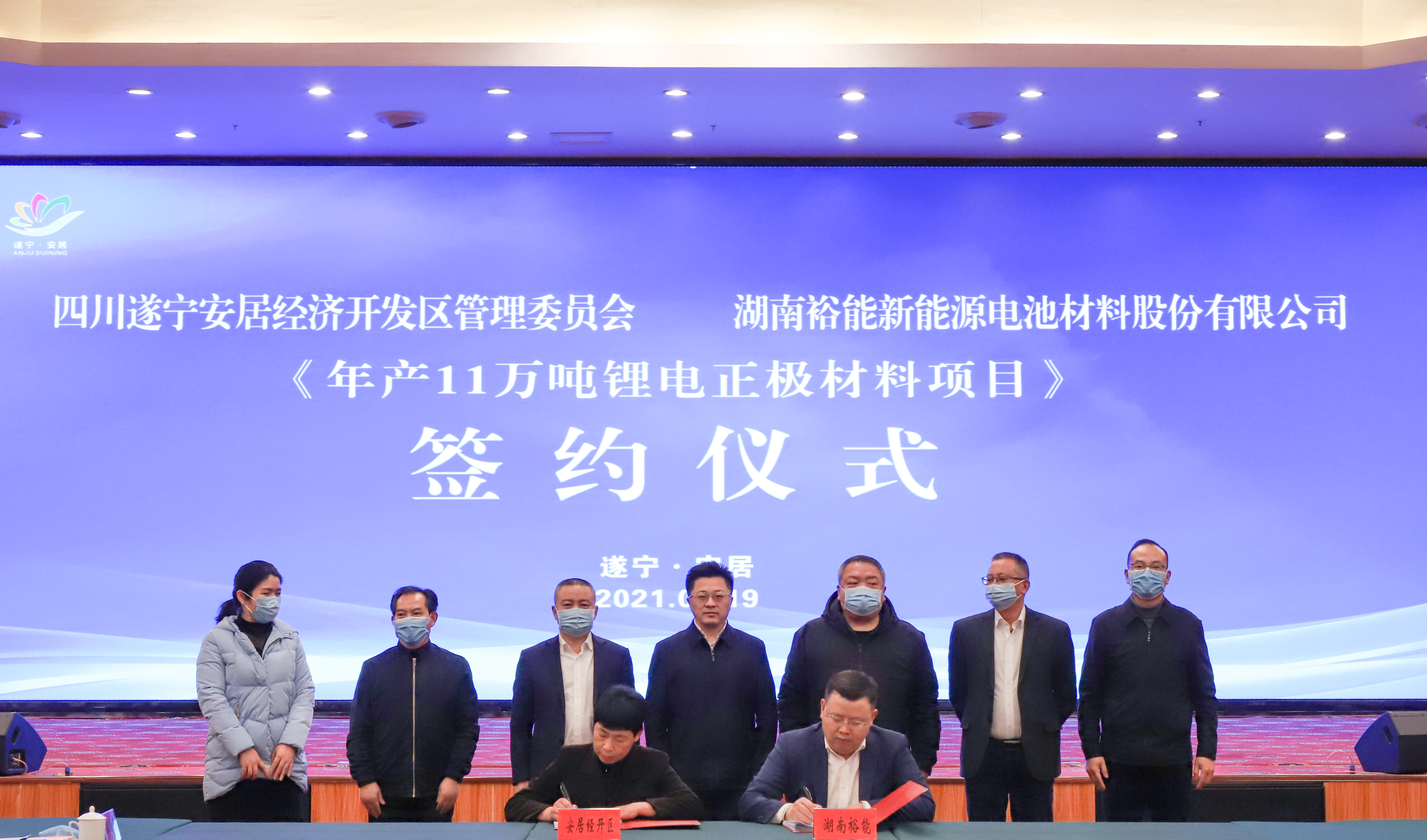 1月19日下午,安居区与湖南裕能举行“年产11万吨锂电正极材料项目”签约仪式,这是安居区2021年打造中国“锂业之都”引领区的第一张捷报。
