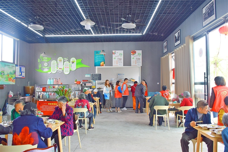如今,幸福食堂前的广场也成为满足老年人社交需求的“小天地”。老人们饭前在这里歇脚、喝茶、拉家常,成为一道温暖的风景线。“自己一个人在家比较孤单,来这里吃饭挺好的,还可以和老友们聊天、喝茶。”琼江社区居民杨小莉笑着说。