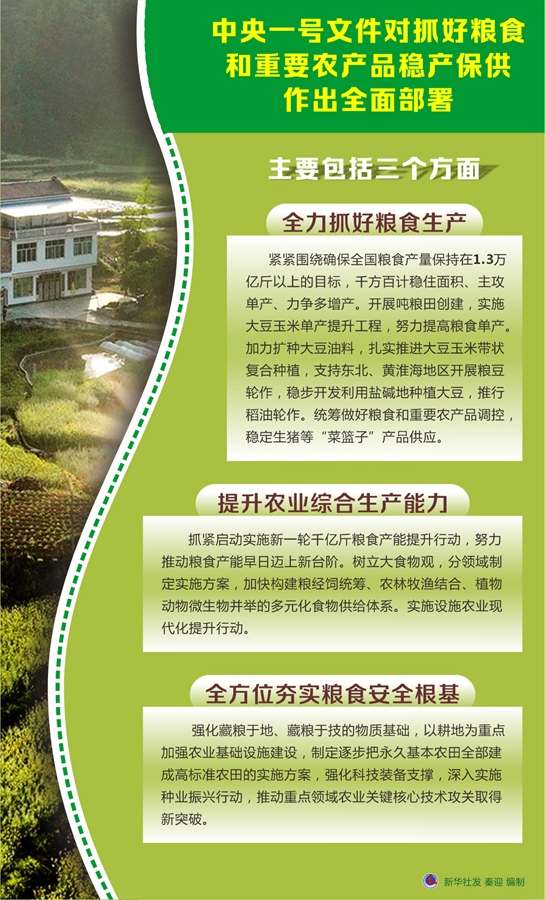 唐仁健表示,中央一号文件对抓好粮食和重要农产品稳产保供作出全面部署,主要包括三个方面: