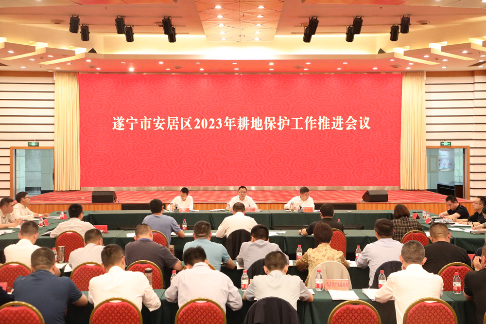 4月13日, 安居区2023年耕地保护工作推进会召开。区委副书记、区长杨文彬出席会议并讲话,强调要深入学习贯彻党的二十大精神和习近平总书记关于耕地保护的重要论述及指示批示精神,扛牢政治责任,开展专项整治,健全长效机制,守住耕地保护红线,筑牢粮食安全根基。