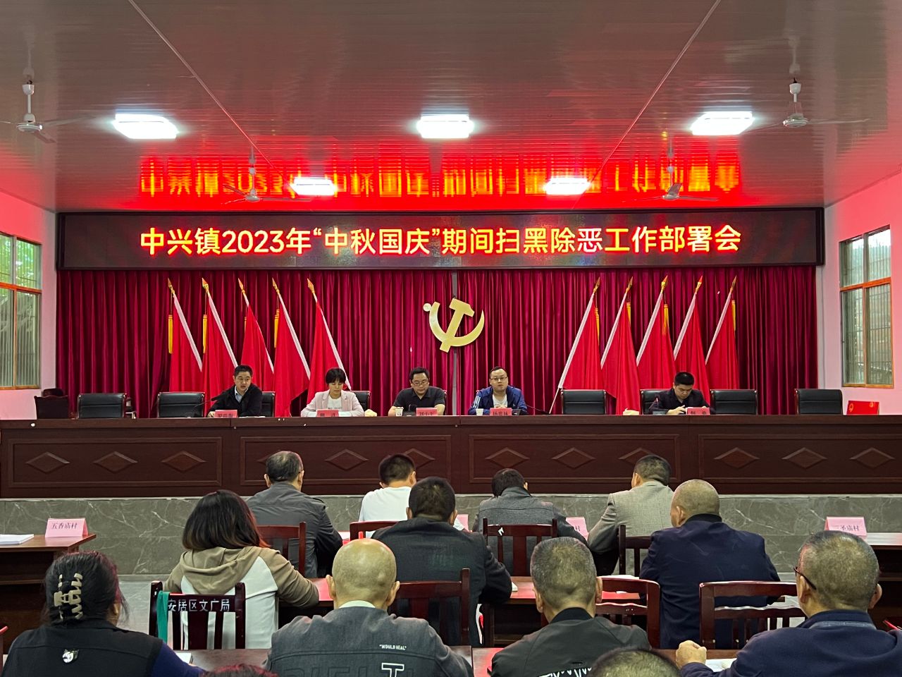 中秋、国庆“双节”将至,为确保“中秋、国庆”双节期间全镇大局稳定,进一步巩固扫黑除恶专项斗争取得的成果,9月27日上午,中兴镇召开“中秋、国庆”期间扫黑除恶工作部署会,会议在镇综合会议室召开,镇党委书记刘小平主持会议,各村(社区)“四职”人员参加会议。