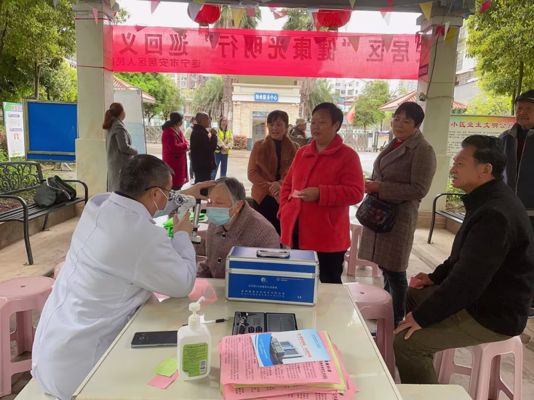 在检测过程中,医护人员还集中普及了白内障预防、病因症状表现、治疗方法和预防保健等知识,引导老年人关注视力健康。参与义诊活动的人们都说:“去医院检查一趟太麻烦了,现在在家门口就能享受到优质的诊疗服务,真是太好了。”