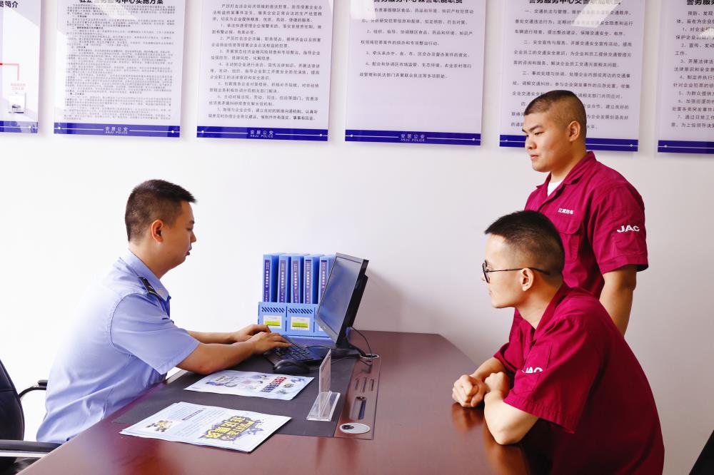 “把警务服务中心设在企业里面,让我们企业的经营管理更有保障,办起事儿来也更加便捷!”说起当前安居区的营商环境,四川江淮汽车有限公司安全环保部副部长刘格粽对警务服务中心点赞。