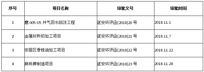 根据建设项目环境影响评价审批程序的有关规定,经审查,2018年11月1日至11月30日我局对1个建设项目环境影响评价文件作出审批决定。现将作出的审批决定情况予以公告,公告期为2018年12月3日-2018年12月14日(10个工作日)。