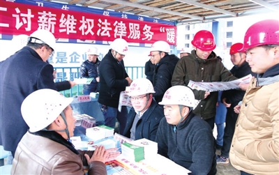 岁末年初是劳资纠纷的高发时期,为进一步做好新形势下农民工法律服务工作,帮助解决农民工权益维护问题,促进和谐劳动关系,12月18日,区司法局联合区依法治区办、区总工会、区农民工服务中心、区住建局、区人社局、四川居阳律师事务所在遂宁市安居城区旧城棚户区(城中村)改造项目(二期)开展了"法援惠民生·服务农民工"法律援助进工地宣传活动,受到了施工单位和农民工的欢迎和好评。