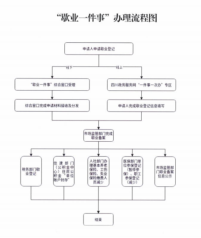 而让歇业备案登记在短短半个小时就能完成的原因,正是安居区率先推出的“歇业一件事一次办”集成改革。依托四川政务服务一体化平台,集成市场主体歇业备案,税务歇业登记,住房公积金“单位账户封存”,基本养老保险、工伤保险、失业保险缴费人员减少,医疗保险参保登记(减少),职工参保登记(减少)等多个事项为一个事项。通过并联审批的方式,实现“一次告知、一表申请、一窗(网)受理”,降低歇业市场主体办事时间与成本。