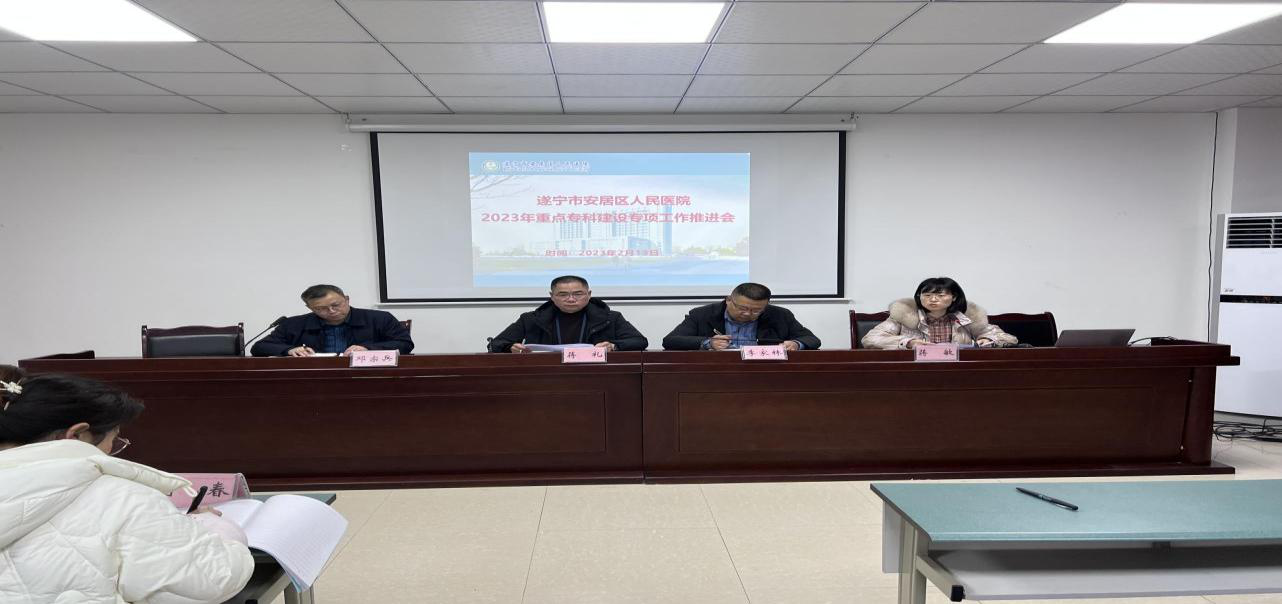 为推进安居区重点专科建设和对口支援工作,2月13日下午,医院2023年重点专科创建专项工作推进会议顺利召开。医院党委副书记、院长蒋礼、党委委员、副院长李家林、党委委员邓宗兵、科教科科长蒋敏及各科室主任、护士长参加了此次会议。