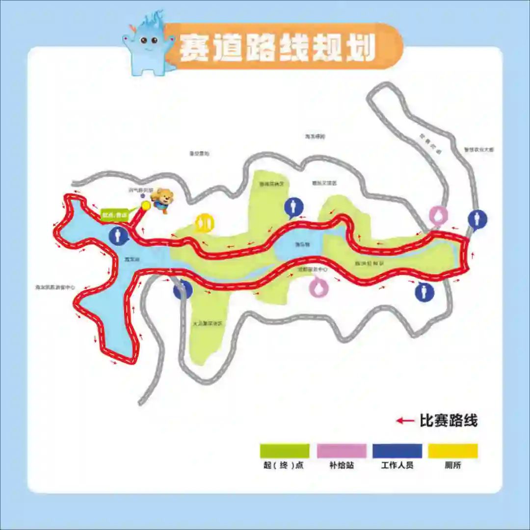 赛事路线:沼气陈列馆广场→大礼堂→初心广场→湖畔民宿→复兴广场→党群服务中心→幸福路→北泉人家→稻田学校→渔乐塘→稻田集市→幸福桥→沼气陈列馆广场