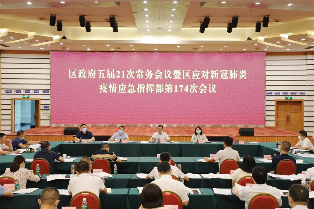 8月31日,区委副书记、区长、区应对新冠肺炎疫情应急指挥部指挥长杨文彬主持召开区政府五届21次常务会议暨区应对新冠肺炎疫情应急指挥部第174次会议,传达学习习近平总书记在省部级主要领导干部“学习习近平总书记重要讲话精神,迎接党的二十大”专题研讨班上的重要讲话精神和习近平总书记在辽宁考察时的重要讲话精神以及中央和省、市和区委相关会议精神,安排部署疫情防控、地质灾害防治、森林防灭火等当前重点工作。