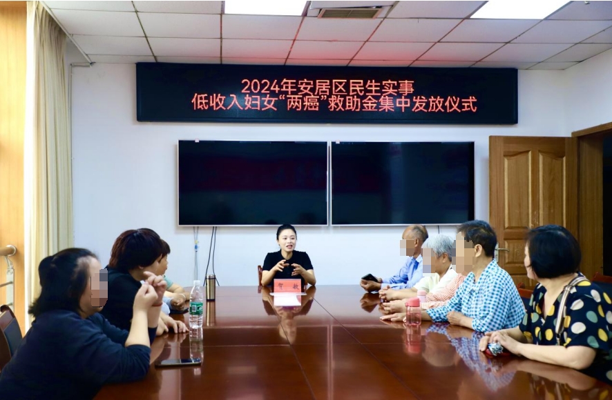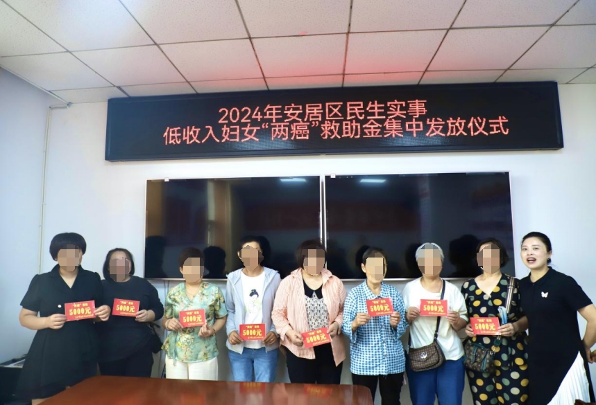 为扎实做好低收入妇女“两癌”帮扶救助工作,切实减轻低收入妇女“两癌”患者经济负担。6月25日,区妇联举行2024年度低收入妇女“两癌”救助金进行发放仪式,为24名符合救助条件的“两癌”患病妇女每人发放5000元,共计12万元。