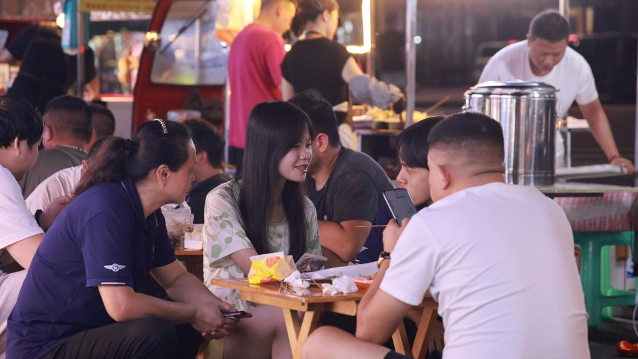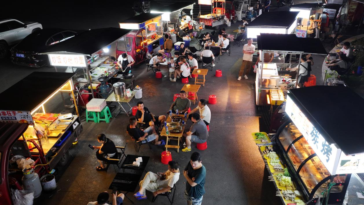 “以前在小区路边摆,行人过路不方便,我们也提心吊胆。现在集中到这里,位置好,人流量也大,大家还能一起把卫生搞好。”夜市摊主刘志均对现在的经营环境很满意。