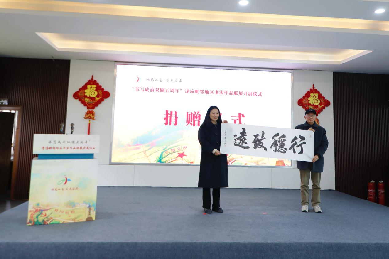 此次书法作品联展,是遂潼毗邻地区文化交流的又一重要成果,更是对成渝双圈建设五周年的深情礼赞,展出的作品笔力雄健、意境深远,以书法为载体,生动展现了成渝地区双城经济圈建设五年来的辉煌成就,记录了遂潼地区在经济发展、社会进步、人民幸福生活等方面的精彩瞬间,抒发了广大书法艺术家对这片土地的热爱和对未来的美好憧憬。它们不仅是艺术的佳作,更是成渝双城携手共进、共创辉煌的生动见证。