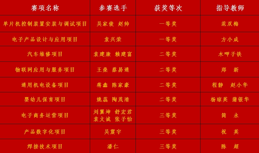 近日,2024年“中银杯”四川省职业院校技能大赛(中职组)举行,安居职中派出13支参赛代表队,截至目前已完成11个赛项,斩获了一等奖2项(全市共4项),二等奖5项,三等奖3项,一等奖获奖数位居全市第一。其中,单片机控制装置与调试赛项连续三年获全省一等奖;电子产品设计赛项连续两年获全省一等奖。