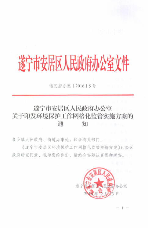 遂宁市安居区人民政府办公室关于印发环境保护工作网络化监管实施方案的通知