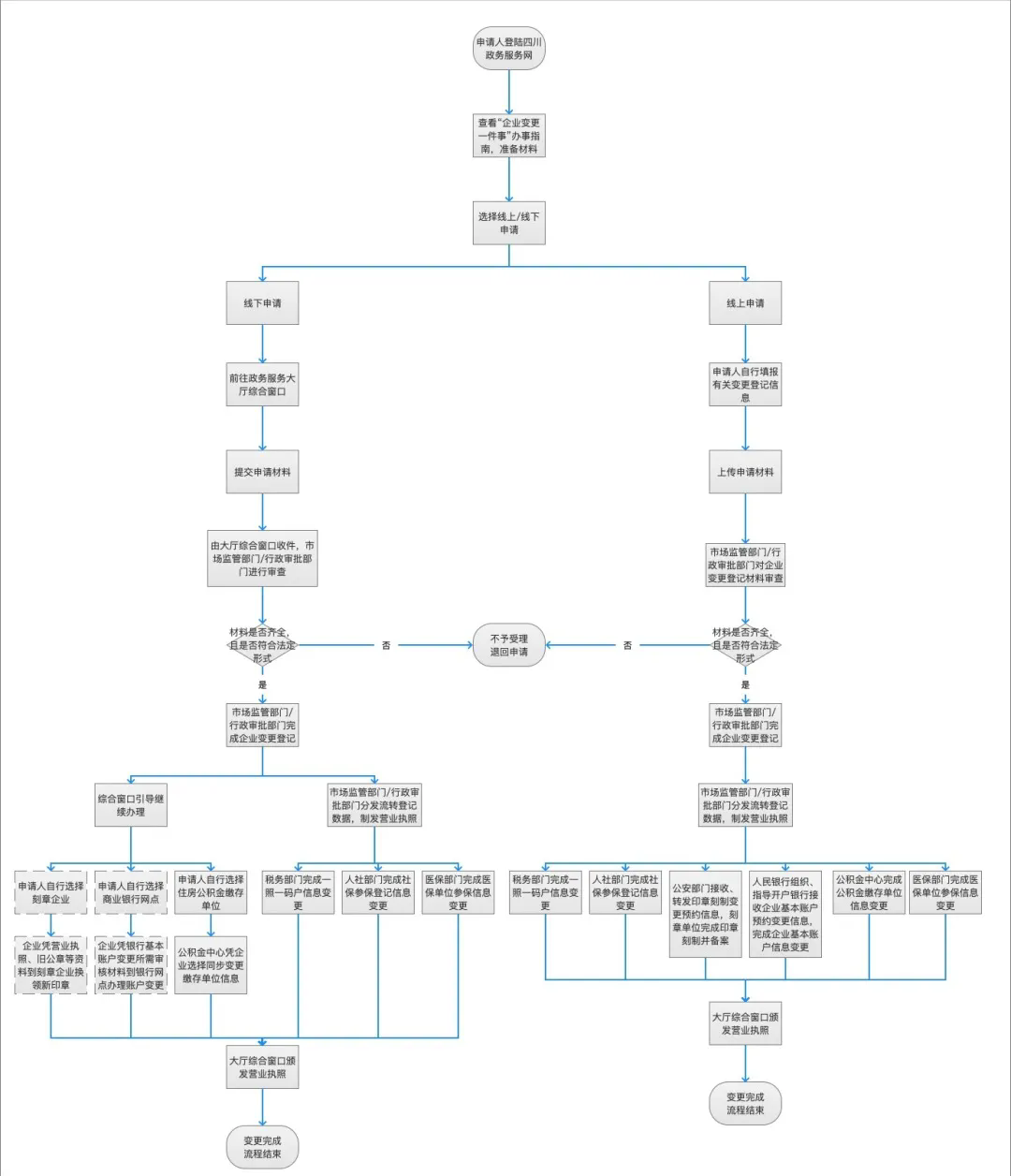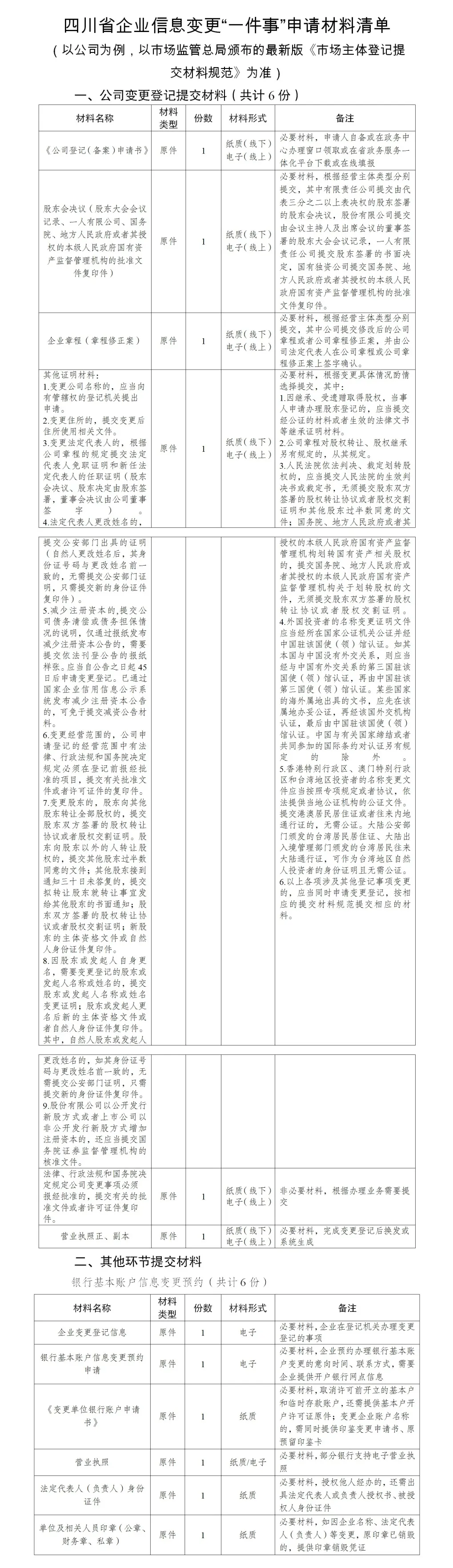 线上办理:申请人在互联网进入“四川省政务服务网”——“一件事服务”专区——“企业信息变更一件事”模块,根