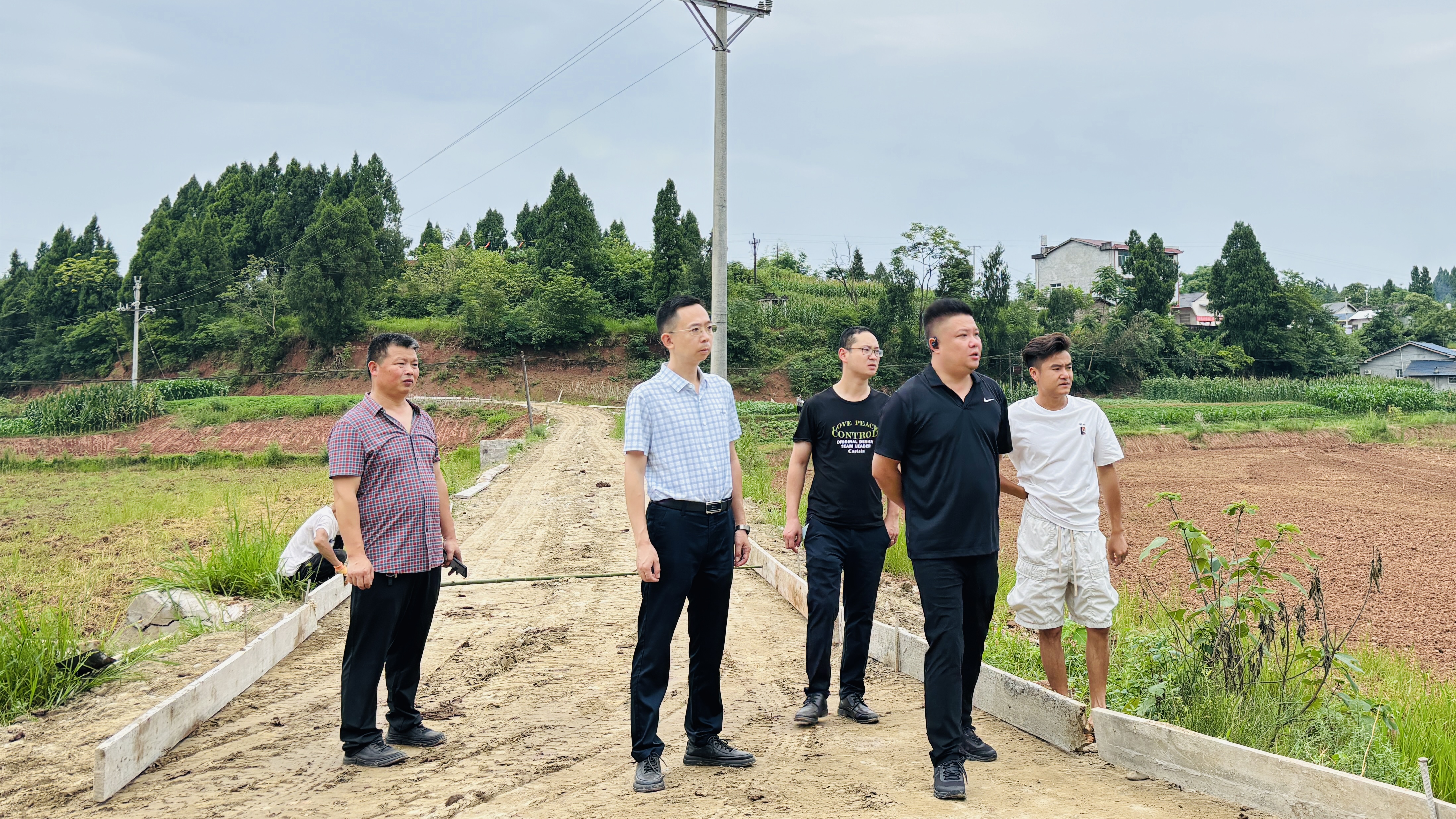 6月24日上午,三家镇党委书记蒋军、镇长刘伟、政法委员刘彬前往九岭村检查高标准农田建设工作。