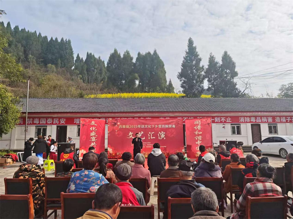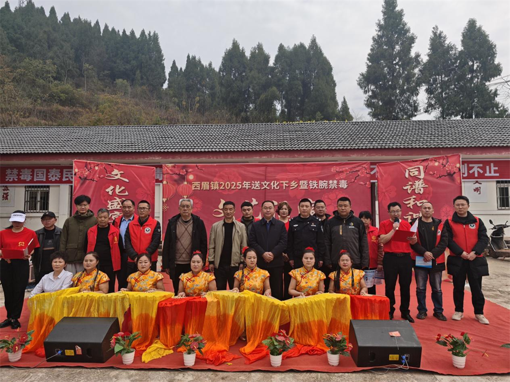 “今天的节目既有看头又有学头!尤其是小品里那句‘一人吸毒,全家遭殃’,真是说到心坎上了。”3月21日,在西眉镇高坡村,一场以“文化惠民暖人心·禁毒宣传护平安”为主题的2025年送文化下乡暨铁腕禁毒文艺汇演活动在这里火热上演,不仅为村民们带来了一场精彩的文化盛宴,更通过寓教于乐的形式,将禁毒知识深植人心。