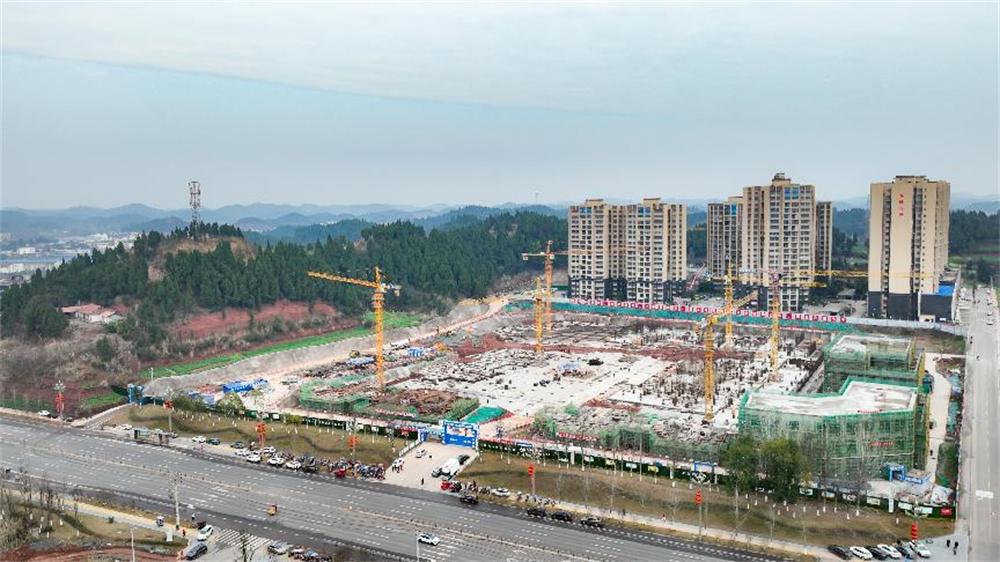 走进安居区东城二期棚户区改造项目的施工现场,塔吊高耸,有序地吊运着建筑材料,运输车辆来回穿梭,工人们头戴安全帽,正紧张有序地进行着项目地下室建设……处处呈现出项目“加速度”建设的生动场景。
