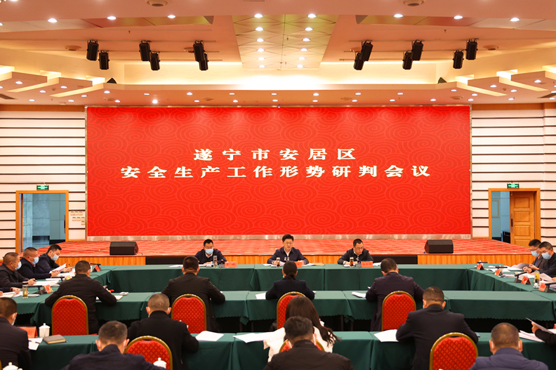 12月2日,安居区安全生产工作形势研判会议召开。区委书记吴军出席会议并讲话,强调要深入学习贯彻习近平总书记对安全生产工作的重要指示精神,全面贯彻落实党的二十大精神和省委十二届二次全会精神,认真落实全市安全生产工作形势研判会议各项部署要求,始终坚持人民至上、生命至上,绷紧思想弦、织密安全网、压实责任链,坚决守牢安全生产底板底线,努力让安居更安全、让安居更安居、让安居更安逸。区委副书记、区长杨文彬主持会议。