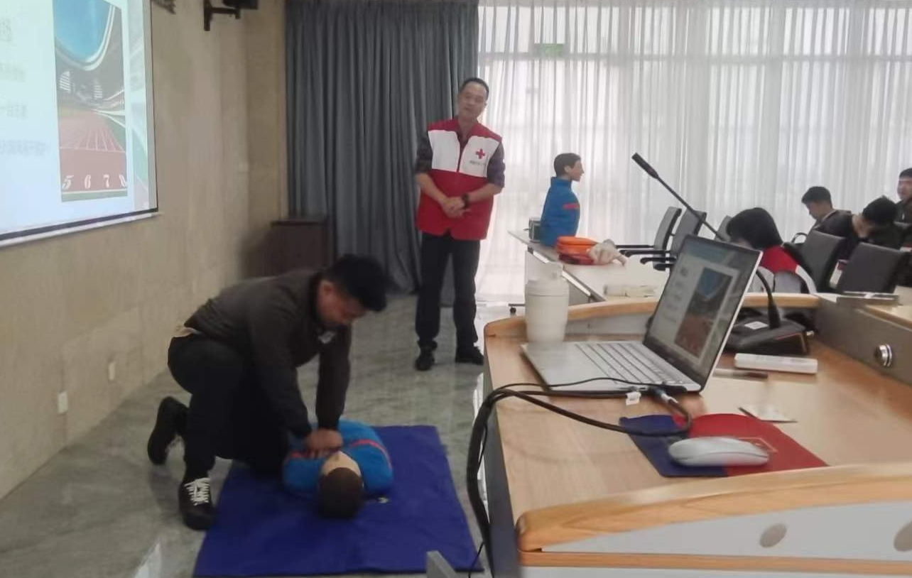 “紧急情况下,按压深度至少达到5厘米,不超过6厘米。同时,按压的频率控制在每分钟100至120次,并连续进行30次按压。”活动中,应急救护培训讲师从心肺复苏、气道异物梗阻清除、创伤救护及意外伤害处置等方面进行应急救护技能培训。