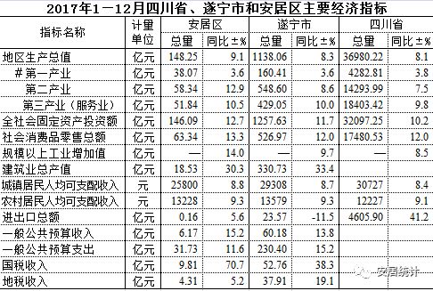 2017年1-12月四川省、遂宁市和安居区主要经济指标