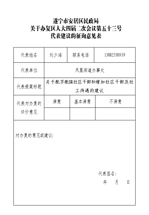 关于遂宁市安居区人大四届二次会议第五十三号