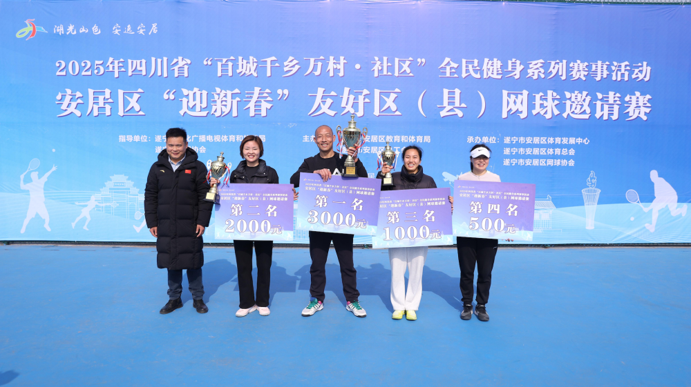 1月12日,2025年四川省“百城千乡万村•社区”全民健身系列赛事活动,安居区“迎新春”友好区(县)网球邀请赛在凤凰体育公园圆满落幕。
