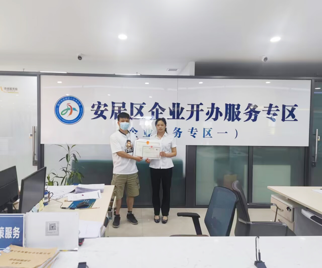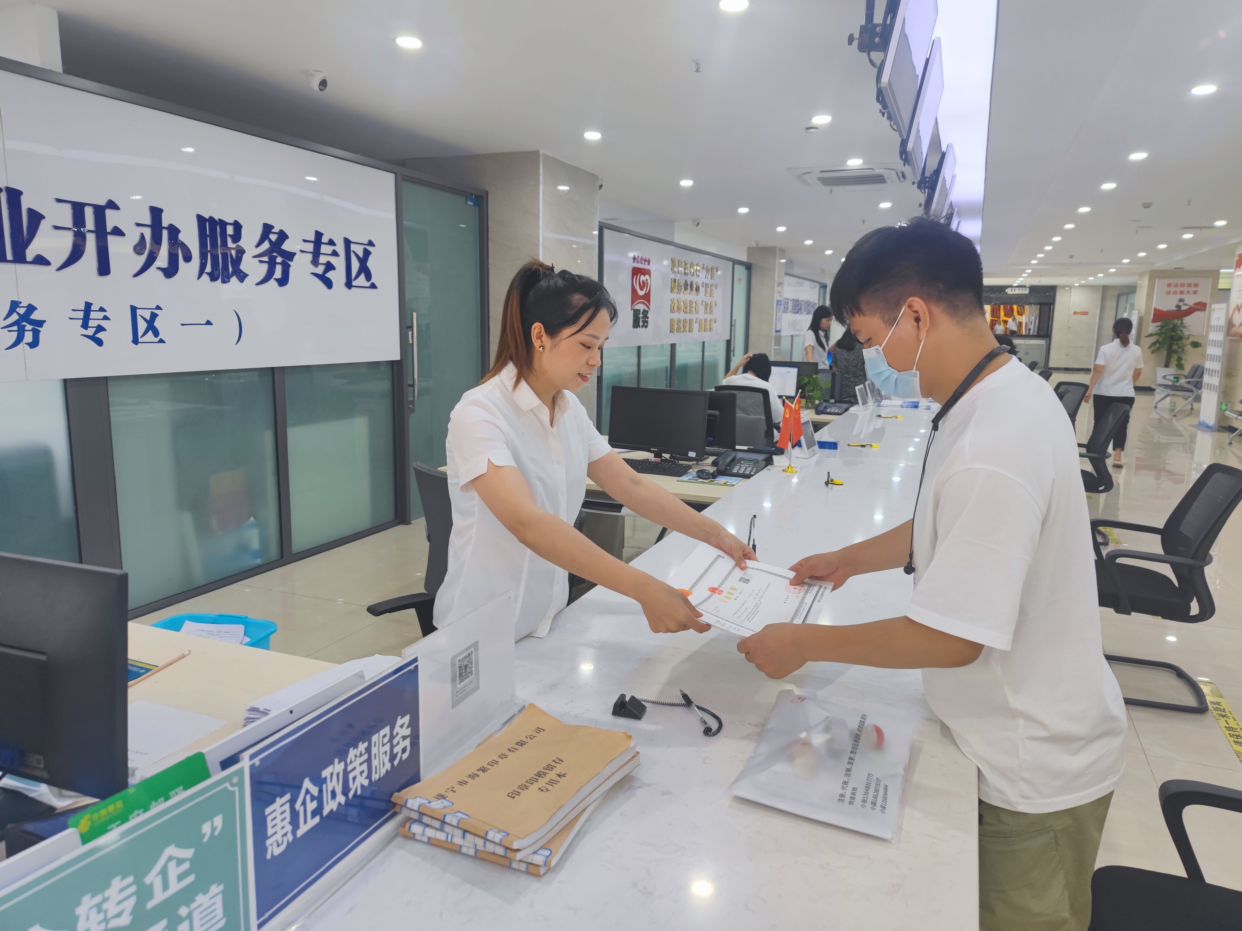 7月5日,四川茂富建设工程有限公司的经办人胡先生来到安居区行政审批局企业开办服务专区,想要将成都的企业迁移到安居。工作人员耐心地向胡先生介绍了省内市场主体迁移登记“一件事一次办”的最新政策。在工作人员的帮助指导下,胡先生花了不到2个小时便完成了省内迁移登记和变更登记“一件事一次办”。