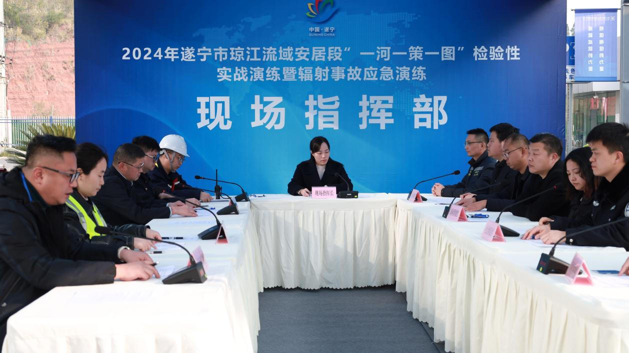 12月17日,由遂宁市人民政府主办,遂宁市生态环境局、安居区人民政府承办的2024年遂宁市琼江流域安居段“一河一策一图”检验性实战演练暨辐射事故应急演练在安居成功举行。市政协副主席邓云,副区长罗杨参加。