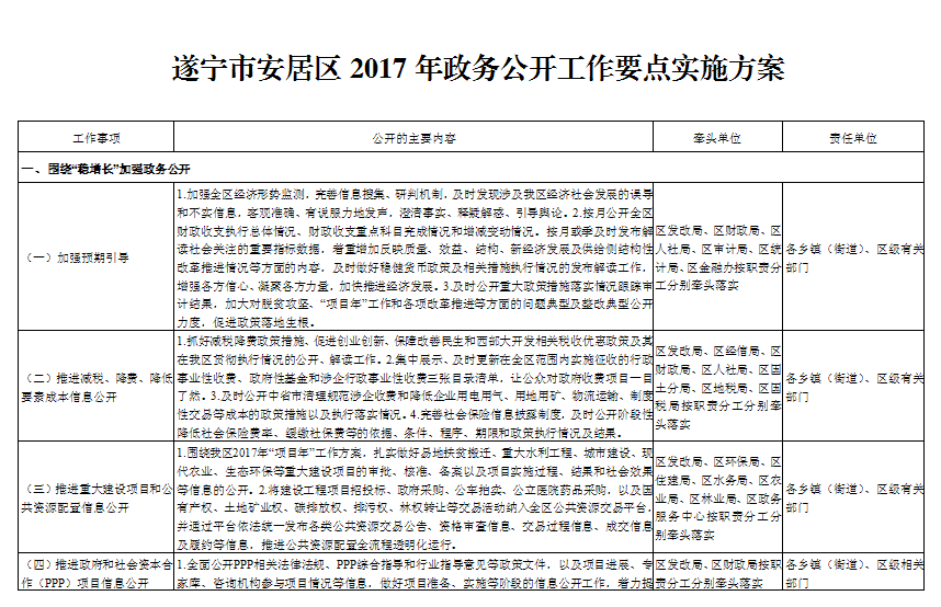 经区政府同意,现将《遂宁市安居区2017年政务公开工作要点实施方案》印发你们,请认真遵照执行。