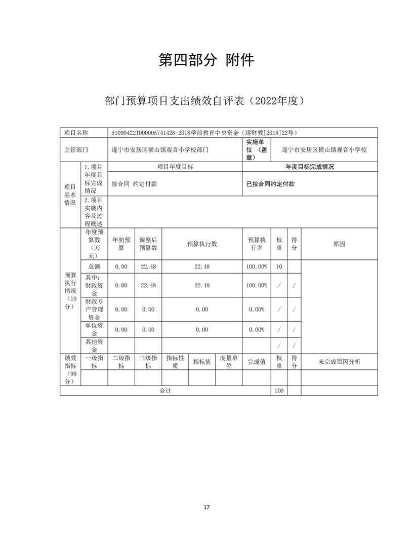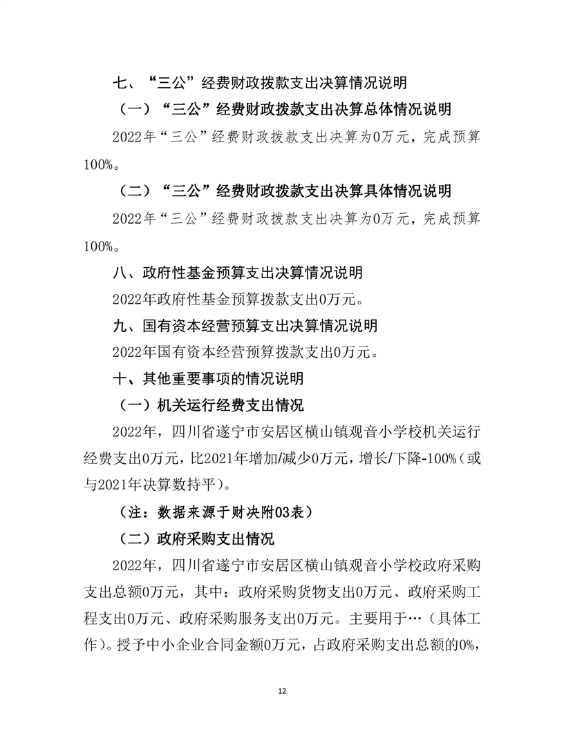 遂宁市安居区横山镇观音小学校 2022年单位决算