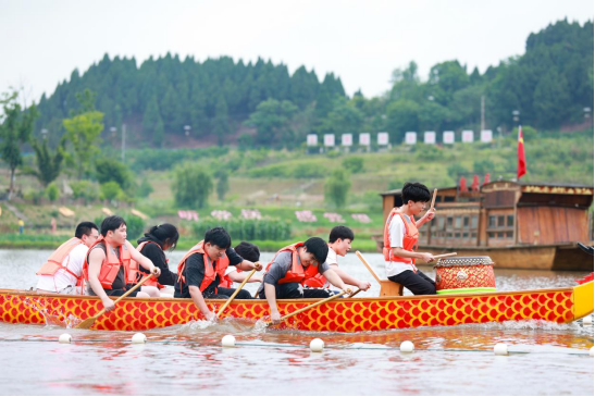 碧波荡漾的海龙湖上,鼓点如雷,催人奋进;整齐划一的船桨入水,激起层层雪白浪花。5月31日,农历五月初五端午节,安居区海龙凯歌景区海龙湖旁人声鼎沸、热情似火,2025海龙凯歌同舟共济龙舟赛在此盛大启幕。一场融合了速度、力量与团队精神的传统水上竞技,将安居的端午节日氛围瞬间点燃。
