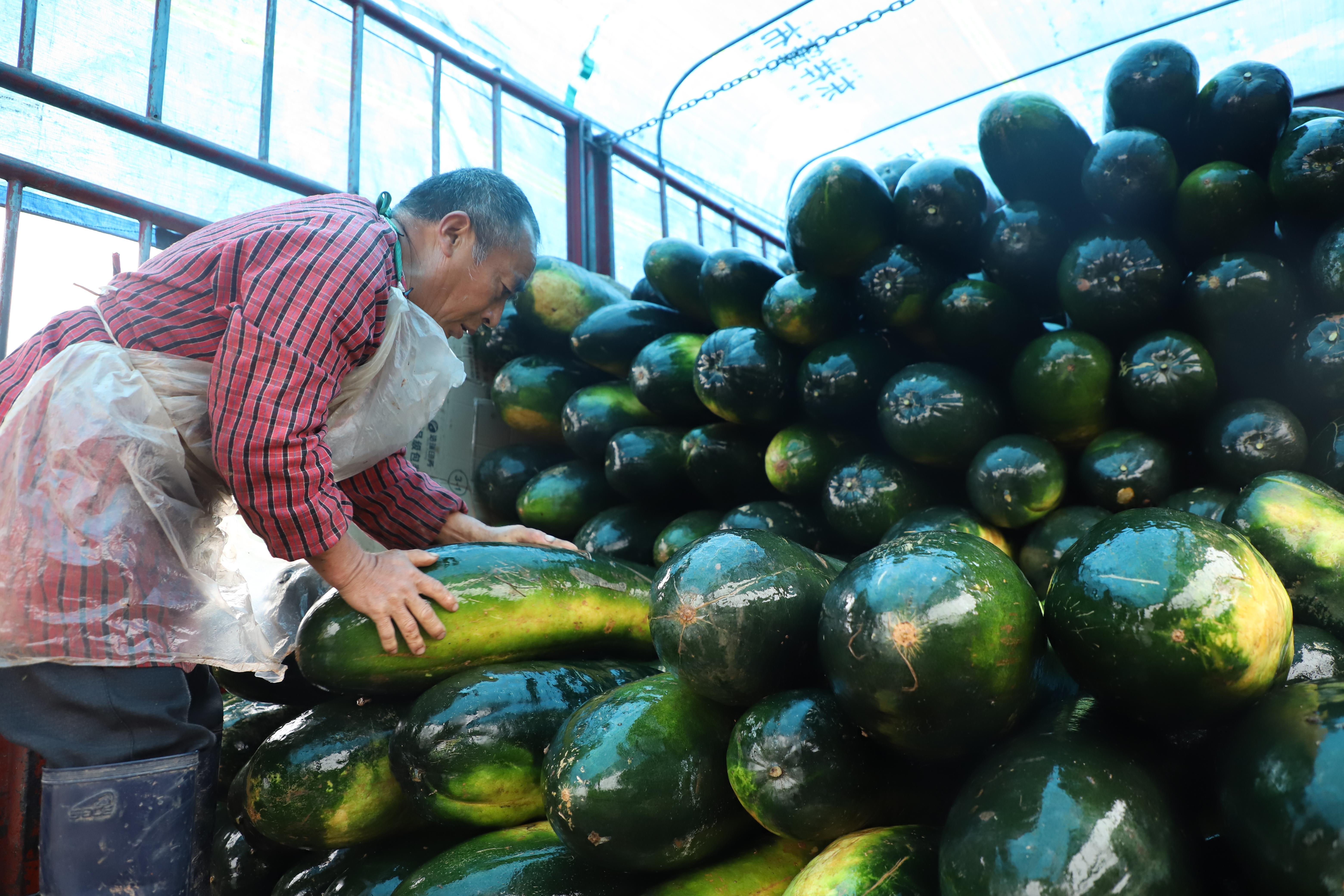 在另一端,本地采购商邹兴荣抱起一个刚清洗完的冬瓜,仔细查验后表示满意。“这冬瓜皮厚肉嫩、可食率高,是市场的抢手货。”他介绍,“今天这批订了四万多斤,主要销往川内各大批发市场,同时也会发往重庆等地。”