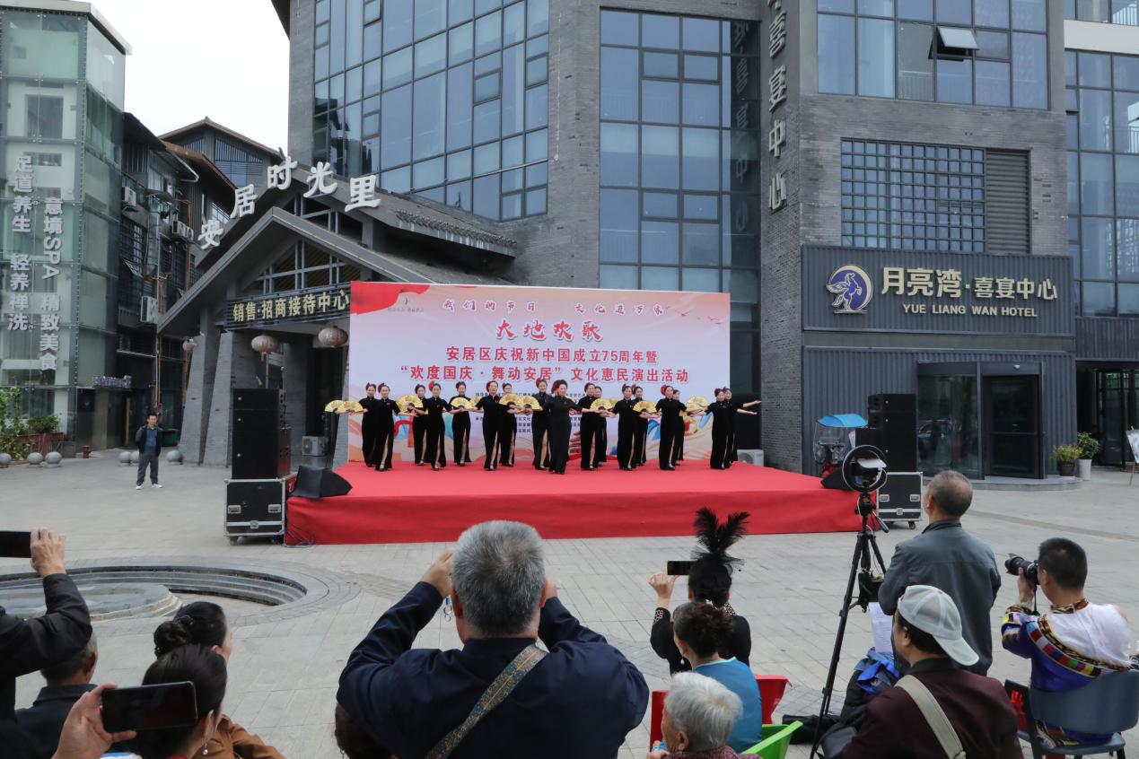 “我们的大中国呀,好大的一个家……”为庆祝中华人民共和国成立75周年华诞,10月1日-3日,安居区庆祝中华人民共和国成立75周年暨“欢度国庆·舞动安居”文化惠民演出活动在时光里广场举行,以文艺之名,向伟大祖国致敬,与广大市民共庆佳节。