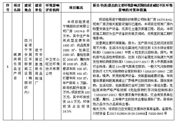根据建设项目环境影响评价审批程序的有关规定,经审议,我局拟对1个建设项目环境影响报告表作出批复决定。为保证此次审议工作的严肃性和公正性,现将建设项目环境影响报告表的基本情况予以公示。公示期为2018年11月7日-2018年11月13日(共5个工作日)。