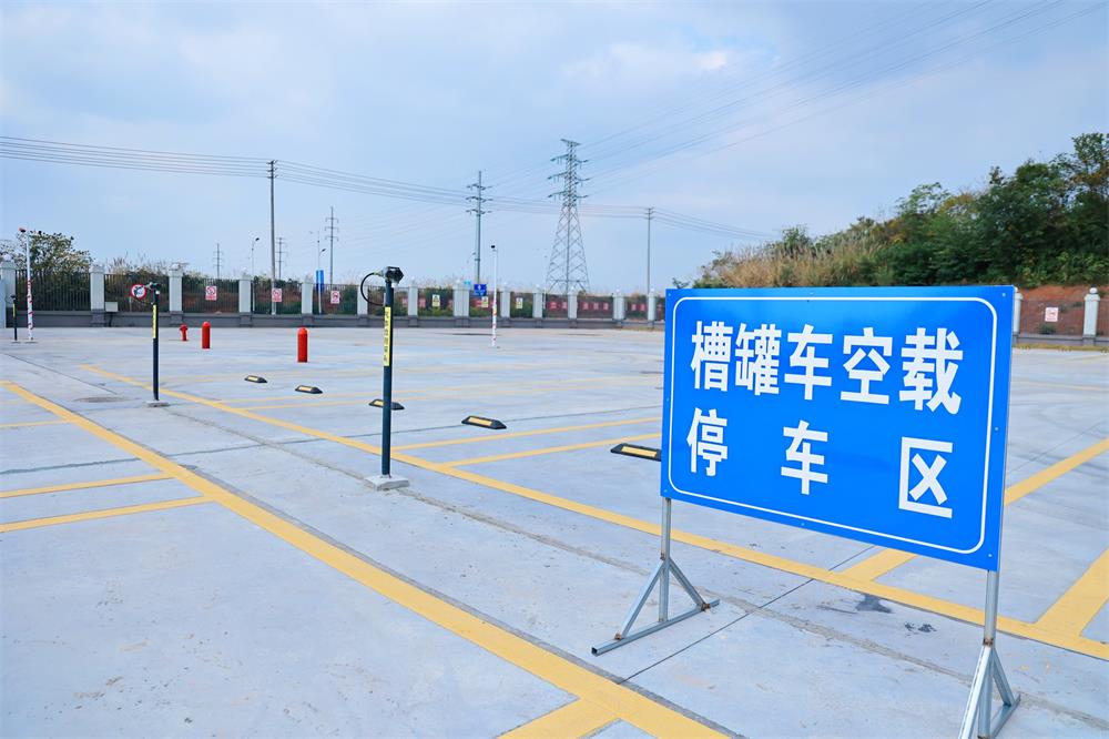 近日,小编走进位于安东大道北段的安居化工园区专用停车场看到,停车区以及各类安全保障设施设备等已完成建设。