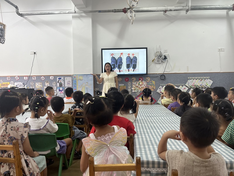 活动当天,全体小朋友齐聚一堂,共同参与了这场充满趣味与挑战的比赛。活动分为“理论知识我知道”和“生活技能大比拼”两个环节。在“理论知识我知道”环节中,孩子们通过集中学习,掌握了穿衣服、穿鞋子、整理玩具和叠被子的基本技巧,激发了他们的自我服务意识。随后的“生活技能大比拼”环节更是将活动推向了高潮。孩子们分组进行比赛,分别展示了穿衣服、穿鞋子、整理玩具和叠被子的技能。他们的双手灵活地穿梭在衣物和玩具之间,现场爆发出热烈的掌声和欢呼声。