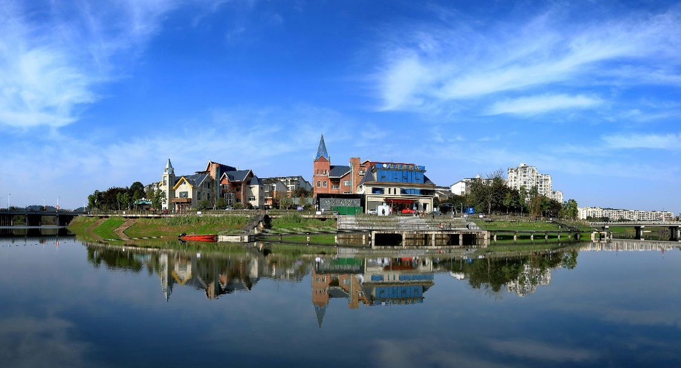 漫步城区,天蓝水清;置身乡村,空气清新。地绿、天蓝,云白、水清,环境优美……