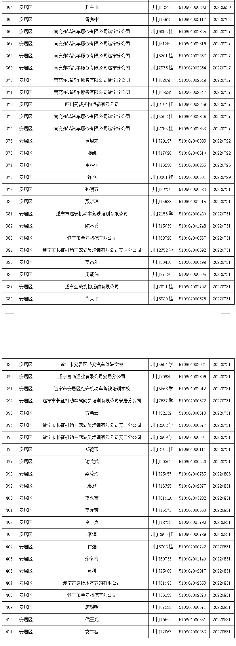 附件:安居区第一批次道路运输证逾期注销车辆明细表