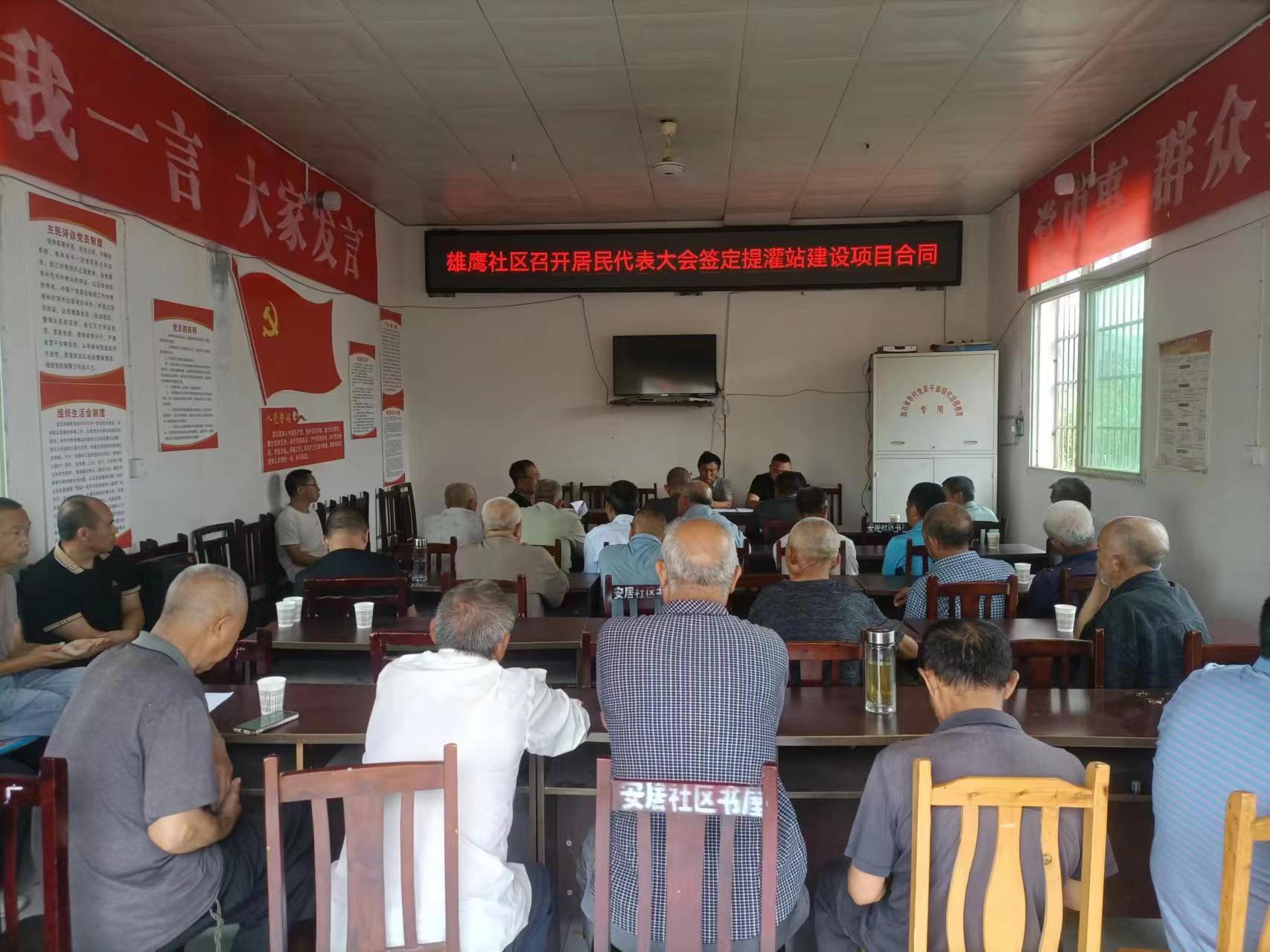 为进一步了解社情民意,全力抓好签订提灌站建设具体事宜合同工作。2024年6月28日,雄鹰社区召开居民代表会与施工方开展协商工作。社区、施工队与居民围绕施工周期、施工规划、资金来源等在会上讨论热烈,充分沟通交流意见。“农业强则国强,农业兴则国兴”,提灌站项目的顺利落实,不仅能解决农业生产季节的田地灌溉需求,还大大提高了农业生产的效率和质量,为村集体经济发展和乡村产业振兴奠定坚实基础。